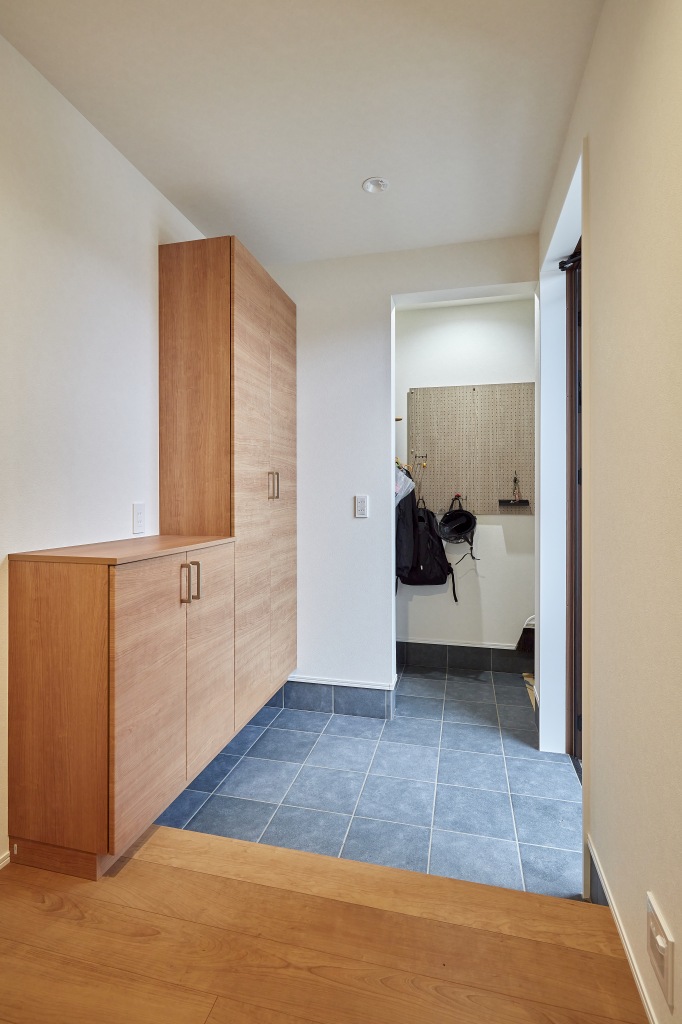 “読書を心ゆくまで楽しめる空間づくり”をテーマにした家づくり。 二階のオープンフロアには、本棚、畳コーナーと書斎を配し、読書に集中できる環境と、リラックスできる雰囲気を演出しました。 <家づくりPOINT> ◆夫婦共通の趣味である読書を堪能! 読書好きのご夫婦のため「本に囲まれた空間」を叶えました。 膨大な量のコレクション(棚にあるのは一部なのだそう!)は圧巻。 隣接する畳コーナーにごろんと横になって読書にふける時間は至福のひとときに ◆コンパクト水廻りで家事効率UP! 水廻りを集約して家事動線を短縮し家事の負担を軽減。 限られたスペースを有効活用し、快適な生活空間を実現しました◎ ◆お酒を楽しむバーカウンター キッチンの造作カウンターは少し高めに設定し、まるでバーのような雰囲気に。 お酒好きなご主人のとっておきを堪能する癒しの空間に。 【注文住宅】 新築 木造二階建て 所在地 広島県福山市 延床面積 25~30坪 敷地面積 約52坪 性能値 (Ua値0.37/C値0.36/Q値1.42) 竣工 2024年