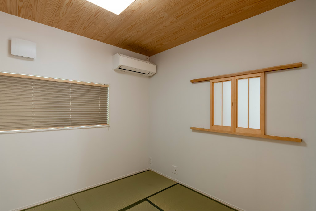 <家づくりPOINT> ◆素材感のこだわり 塗り壁や無垢床、可塑剤やPVC(ポリ塩化ビニル)を使用しない紙クロスなど身体に優しい素材をチョイスされた本物志向のオーナー様。 リビングの一角に設けた和室からはい草の良い香りが漂い、心地良い空間になりました。 手すりも木製で、抜け感のあるデザインやサイズ感を安全性も考慮しつつ一緒に検討しながら決定しました。 ◆生活しやすい動線計画 キッチン、洗面、トイレ、ランドリールームなどの水廻りは回遊動線に。家事効率もUP! また、「階段下を有効活用させたい」とのご希望があったので、両扉収納やワゴン収納を多方面から収納できるよう様々な大きさの収納を造作しました。 ◆家の中心にスタディスペースを配置 お子さんの学習やテレビの視聴、おやつタイムに重宝◎ 宿題を教える際や食物のサーブ時に大人が前に立つと丁度良い高さに設計。 また、本棚収納と下部収納ををしっかり確保しているので、本やおもちゃも散らばる心配がありません。 【注文住宅】 新築 木造二階建て 所在地 広島県福山市 延床面積 約40~45坪 敷地面積 約52坪 性能値 (Ua値0.34/C値0.34/Q値1.35) 竣工 2024年